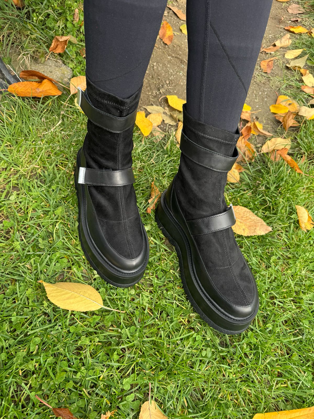 Materialul moale și flexibil se mulează perfect pe forma piciorului, asigurând o potrivire impecabilă și o senzație de confort de durată. Cu o baretă peste picior, aceste ghete adaugă un element distinctiv și elegant designului lor. Bareta oferă stabilitate și susținere, menținând piciorul într-o poziție confortabilă și asigurând un mers sigur și fără griji. Designul atent lucrat și detaliile de calitate fac din aceste ghete un accesoriu de înaltă clasă.