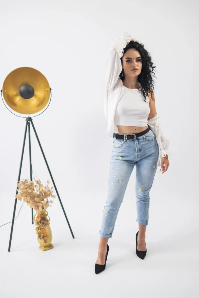 Un model cu personalitate, blugii conici Mauri adaugă un strop de magie în garderoba ta. Decorați cu aplicații în formă de fluturi brodați și mici pietricele strălucitoare, acești blugi sunt perfecți pentru ținute casual, feminine și relaxate.
