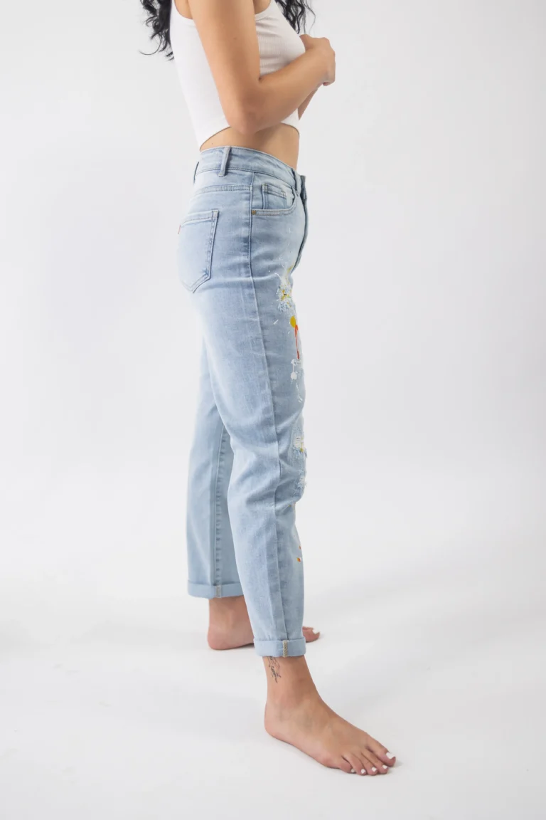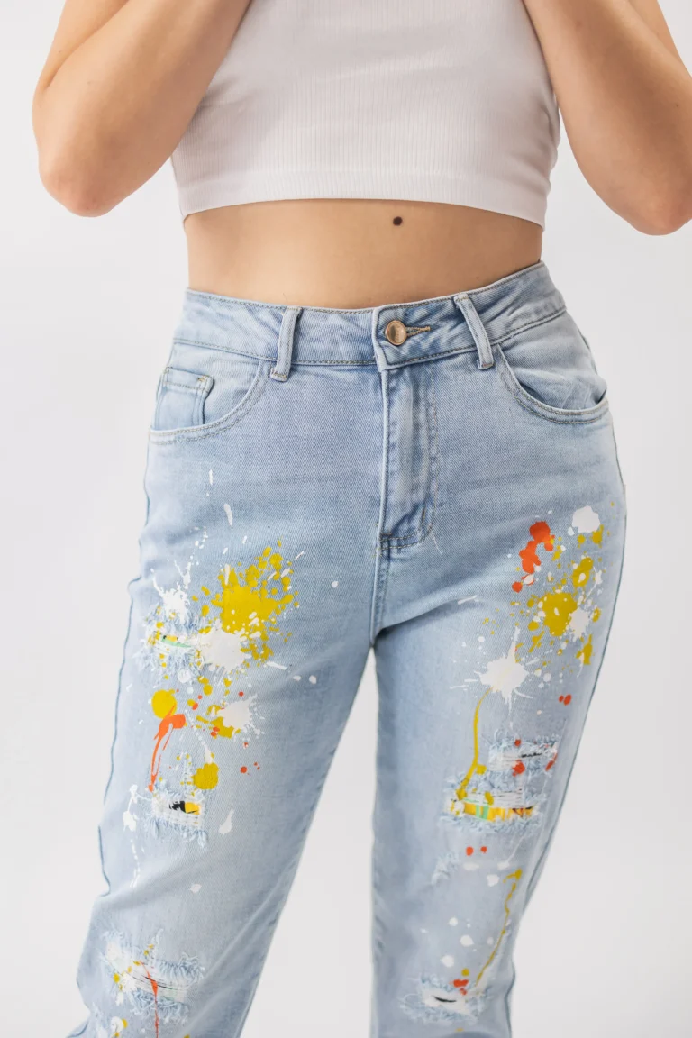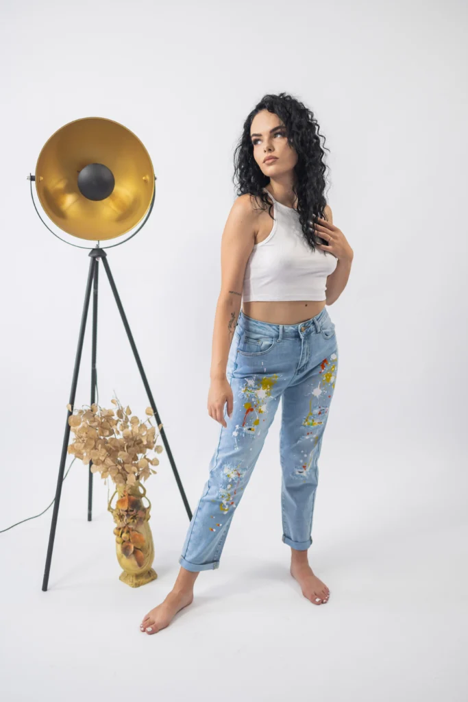 🎨 Adaugă o notă artistică garderobei tale cu blugii Mauri! Modelul boyfriend fit, cu talie medie și picturi manuale colorate, aduce un aer cool și creativ ținutelor tale casual. Ideali pentru un look îndrăzneț și original!