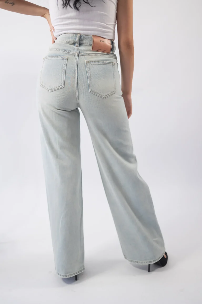 Blugii wide leg Mauri cu talie înaltă sunt alegerea ideală pentru un look modern și relaxat. Modelul vine într-o nuanță pastelată de verde mentă deschis și este evidențiat de un decupaj lateral texturat care oferă un aer fresh și stilat.