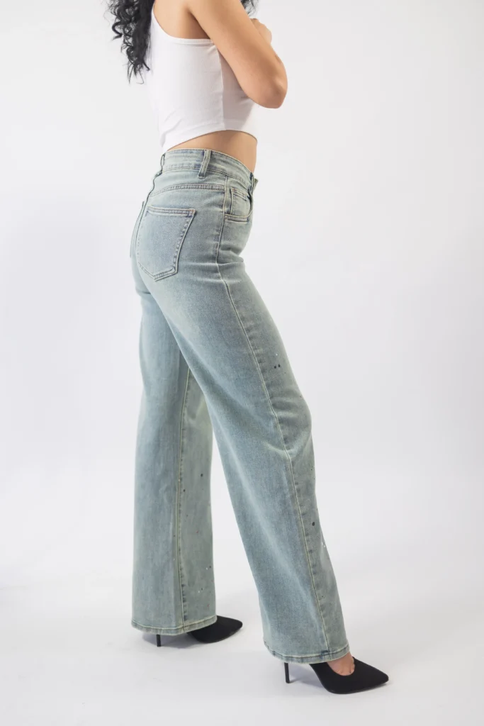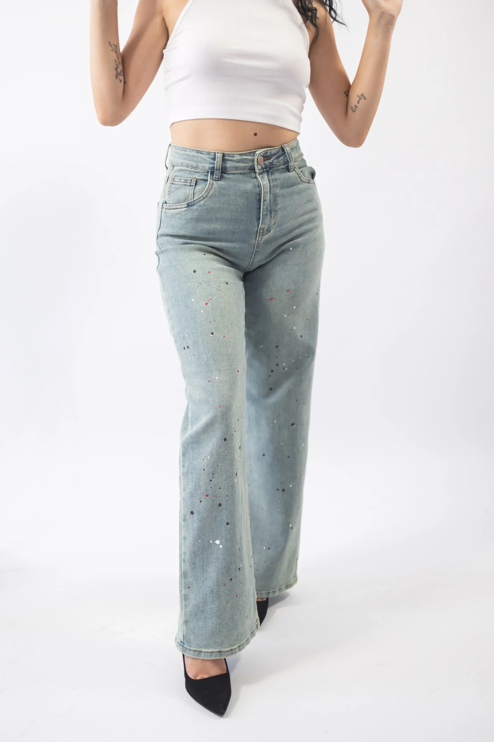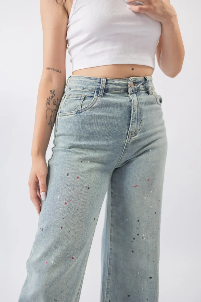 Blugii Mauri cu stropi decorativi de vopsea sunt alegerea perfectă pentru un look creativ și relaxat. Croiala lejeră și detaliile unice adaugă originalitate și confort în orice ținută casual.