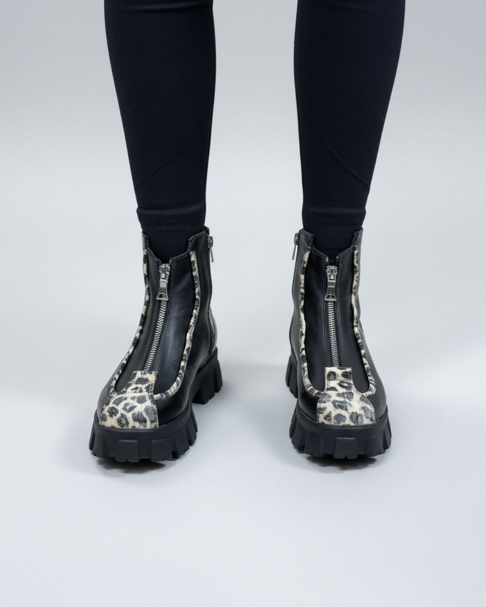 Modelul Chiara redefinește stilul urban prin combinația de piele naturală neagră și detalii animal print, oferind o notă îndrăzneață și feminină oricărei ținute.