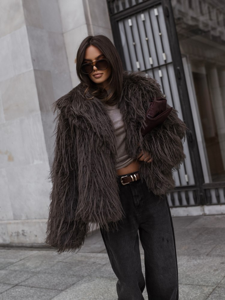 Designul cu textură bogată și volum impresionant transformă această piesă într-un must-have al sezonului rece.