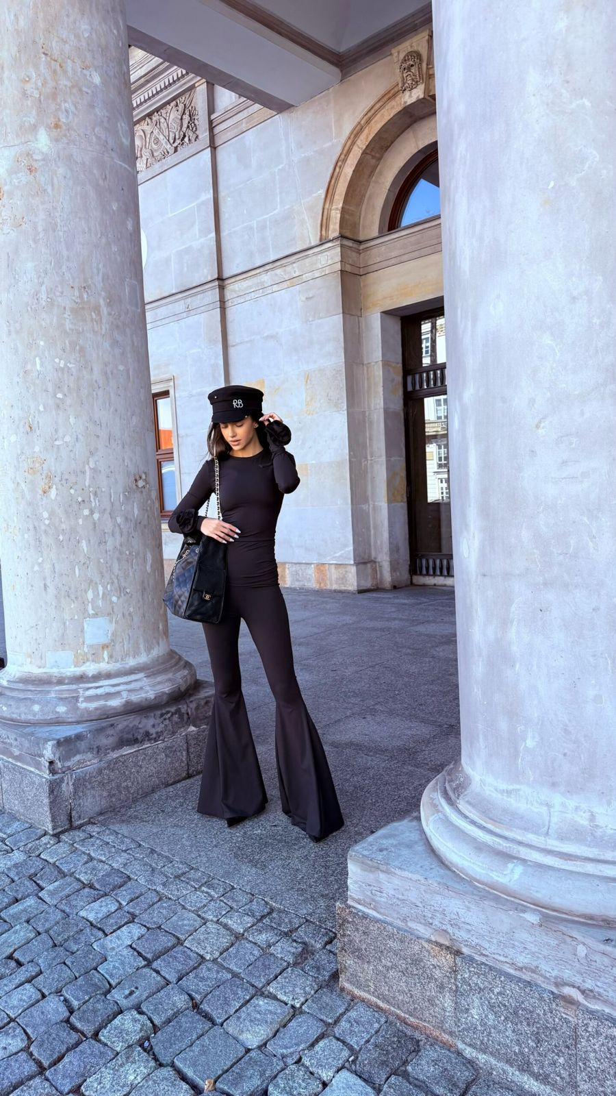 ✔️ Pantalonii evazați alungesc linia picioarelor și conturează talia perfect.