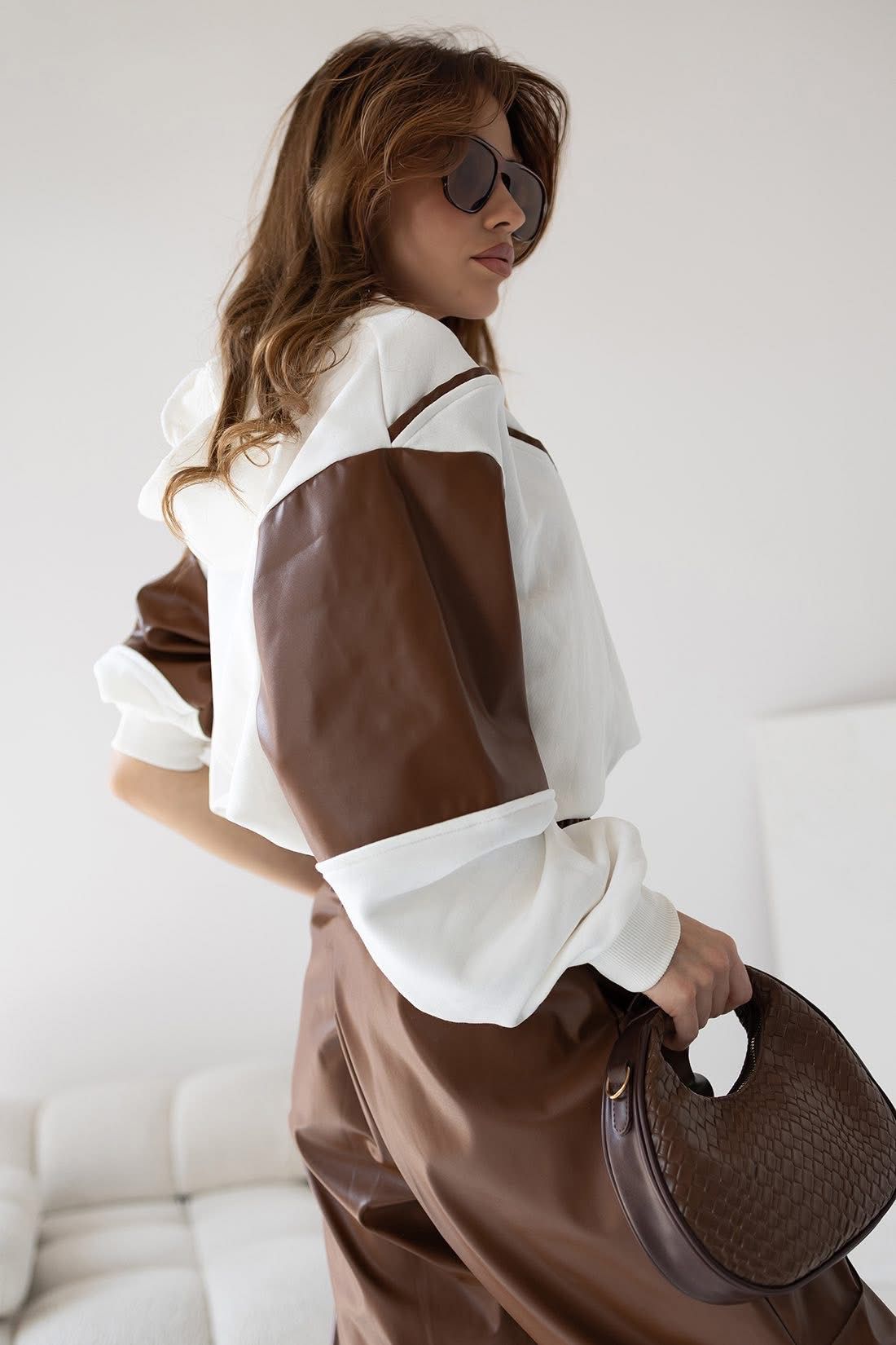 Setul Mocha Street este combinația perfectă dintre casual și urban-lux. Pielea eco moale oferă o senzație premium, iar contrastul alb-maro transformă fiecare apariție într-una memorabilă.